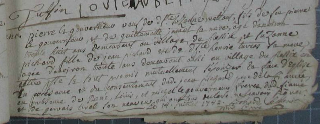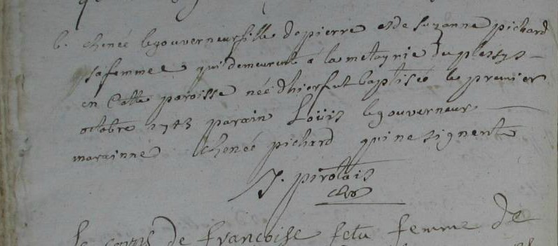 Témoins :LE GOUVERNEUR Jean ( 1699 - <> 1738 & 1766 )