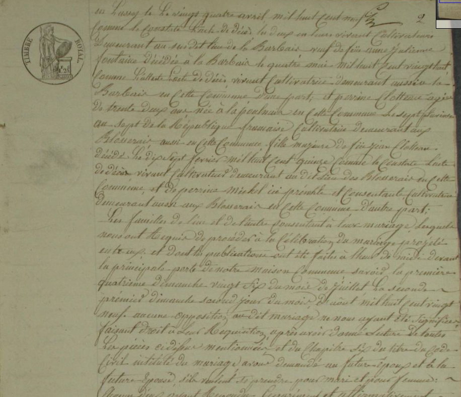 Union 1 : FONTAINE Anne Julienne ( ? - 1828 )