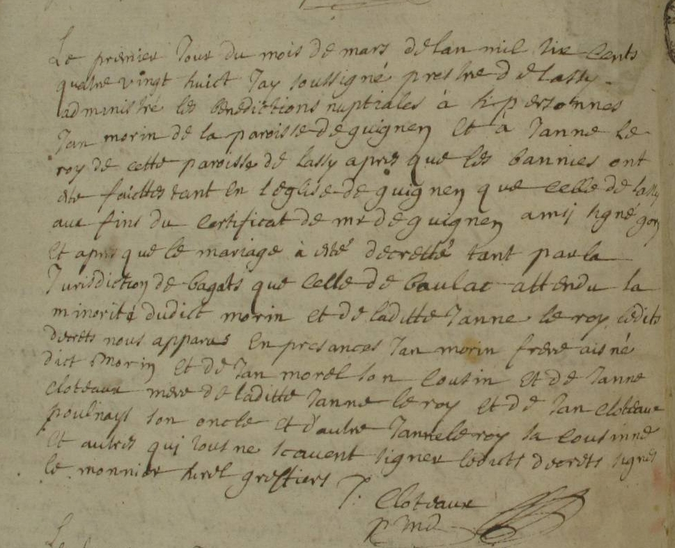 Domicile : 1672 à Goven 35580 village de la Tardivelaye Décès : après 2 mars 1679 à Goven 35580