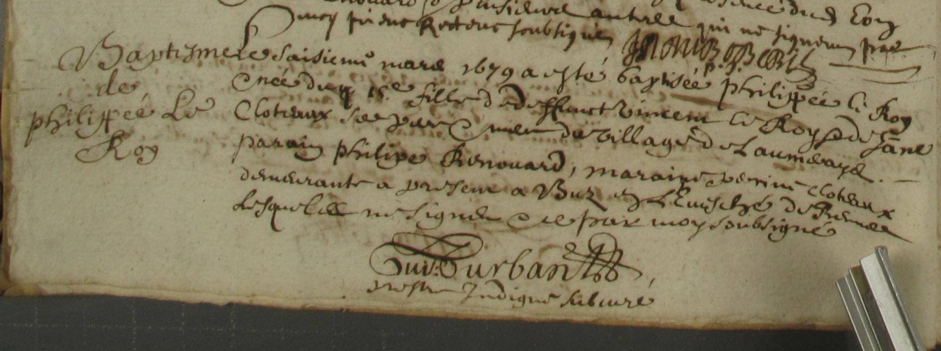 Père : LE ROY Vincent ( < 1653 - < 1679 )