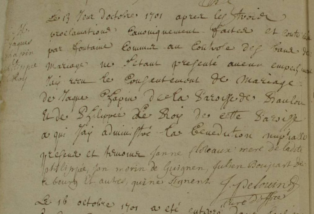 Union : GAULTIER Philippée ( < 1699 - > 1714 )
