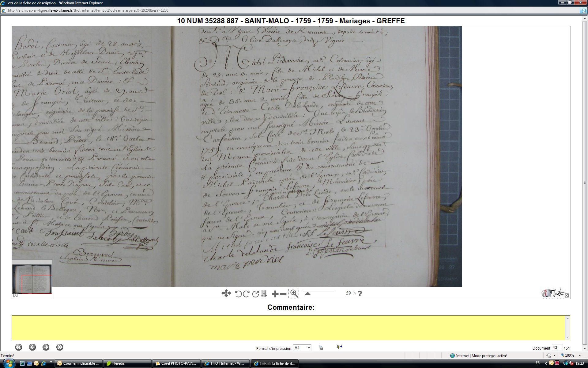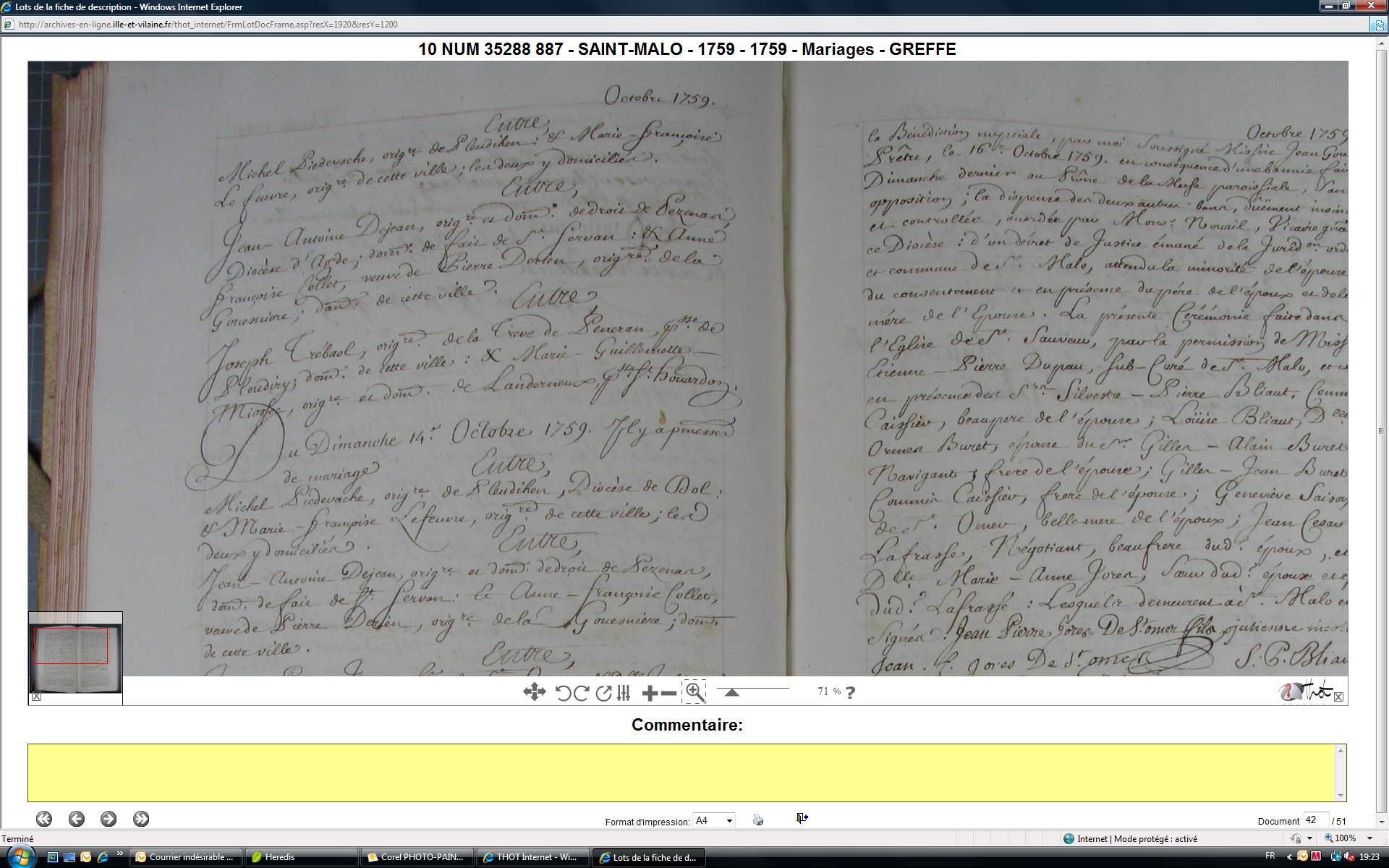 Mariage : 23 octobre 1759 à Saint-Malo 35400