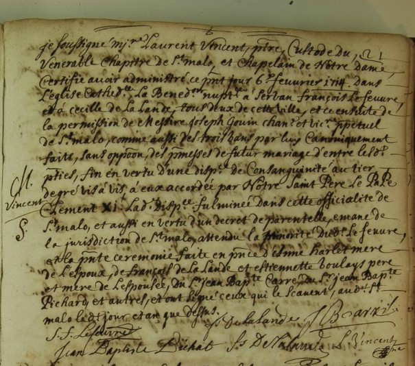 Mariage : 6 février 1714 à Saint-Malo 35400