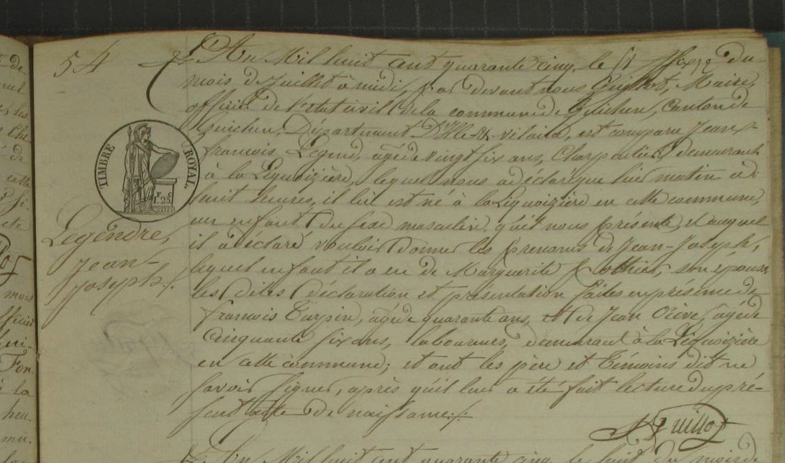 Père : LEGENDRE Joseph ( 1774 - 1840 )
