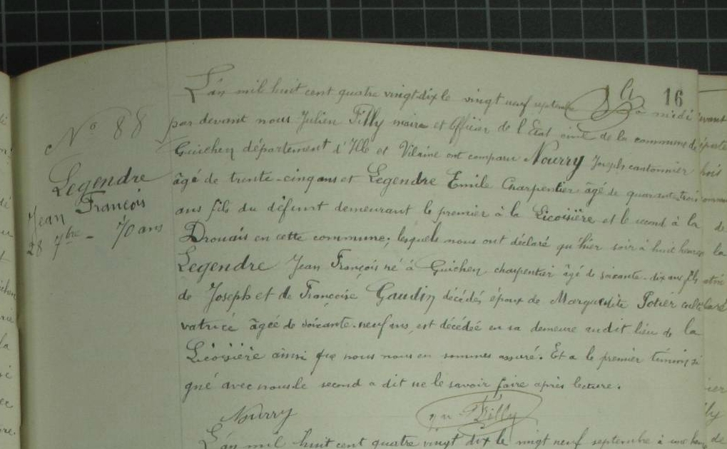 Domicile : 1872 à Guichen 35580 La Pérais Décès : 28 septembre 1890 à Guichen 35580