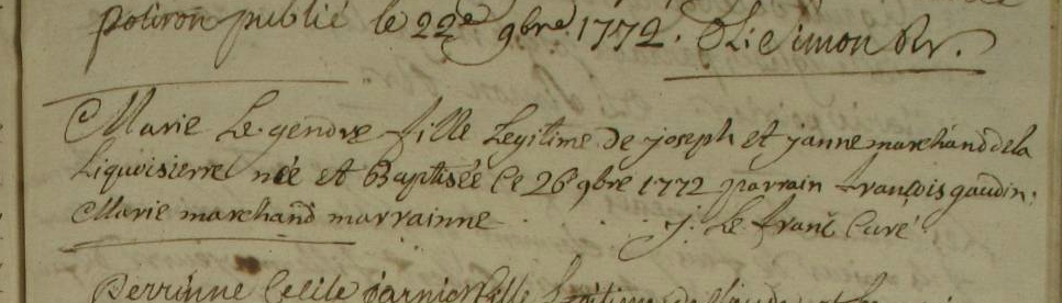 Naissance : 26 novembre 1772 à Guichen 35580 La Liquoizière
