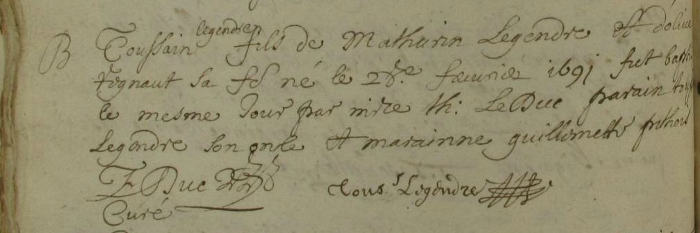 Père : LEGENDRE Mathurin ( < 1660 - > 1692 )