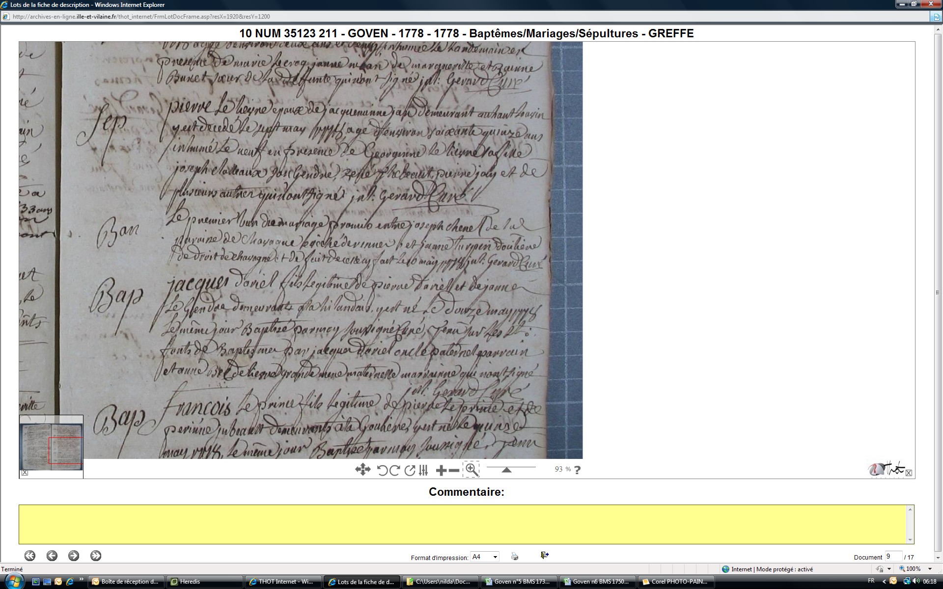 fiancailles: 11 fevrier 1740 Maure-de-Bretagne,35330,Ille-et-Vilaine,Bretagne,FRANCE (source: Etat civil. Archives de Maure - Mairie; -Original) -