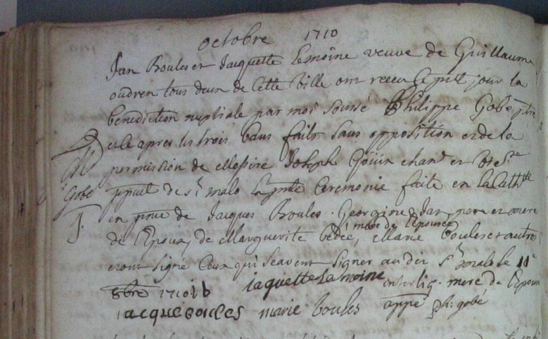 Union : BOULES Jean ( < 1690 - > 1710 )