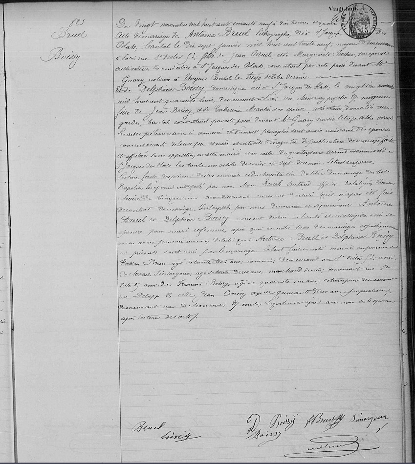 Mariage : 20 novembre 1869 à Paris 5ème 75005