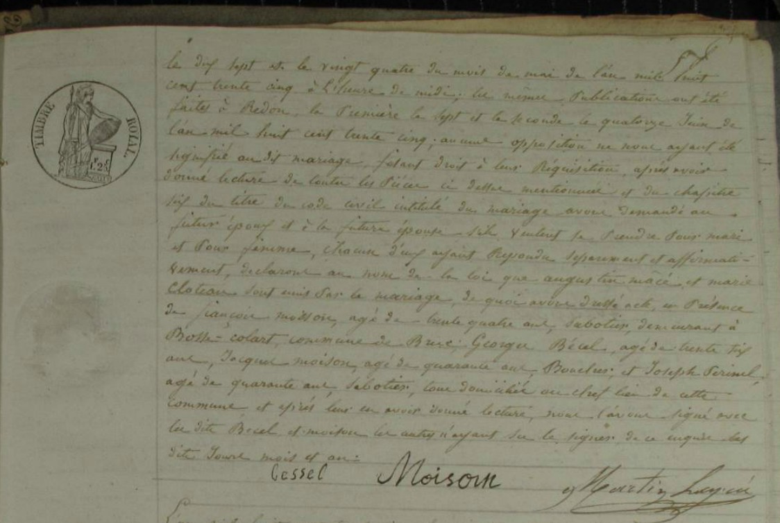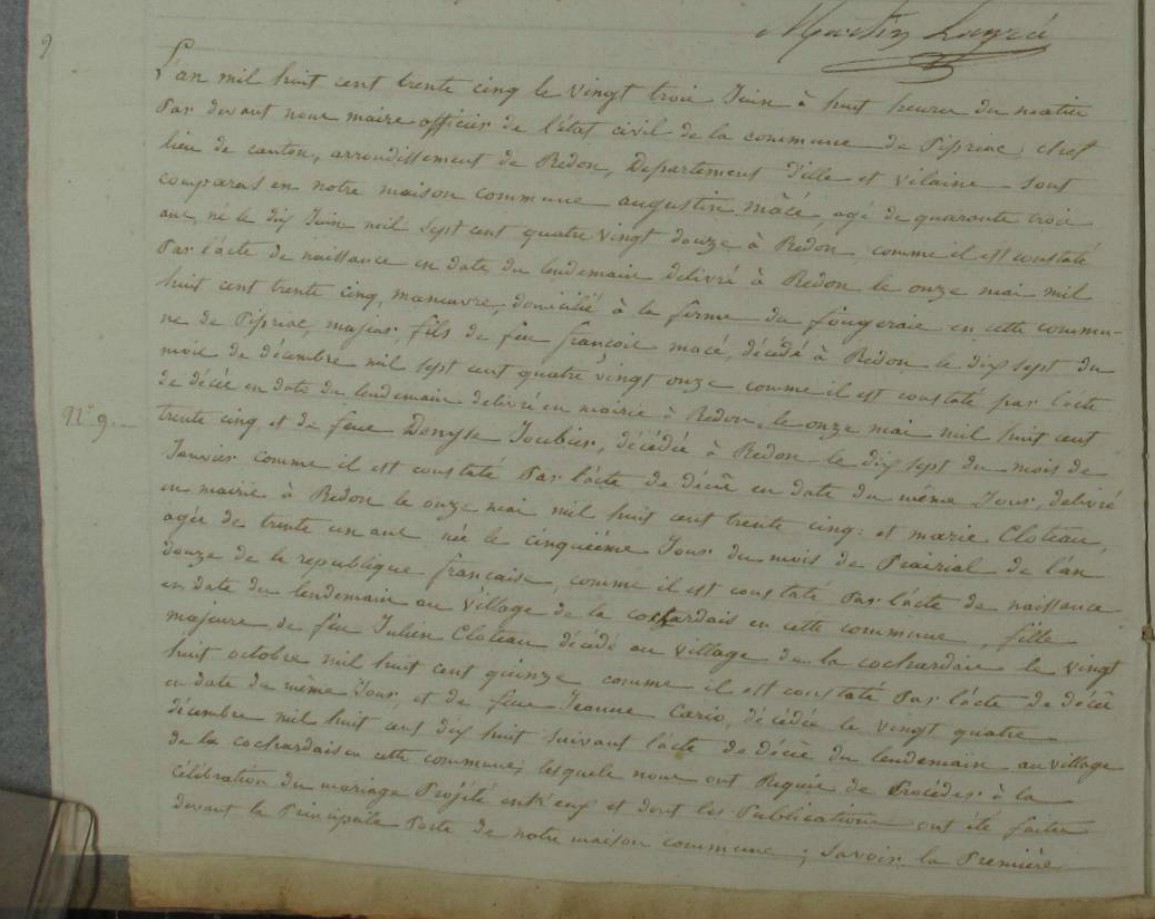Mariage : 23 juin 1835 à Pipriac 35550
