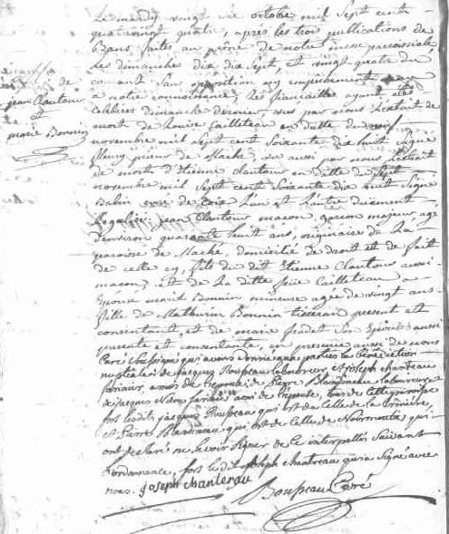 Mariage : 26 octobre 1784 à Barbâtre 85630