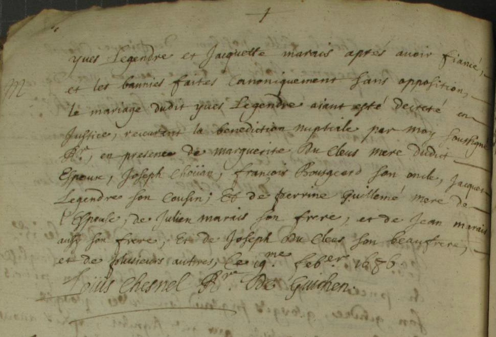 Mariage religieux : 19 février 1686 à Guichen 35580