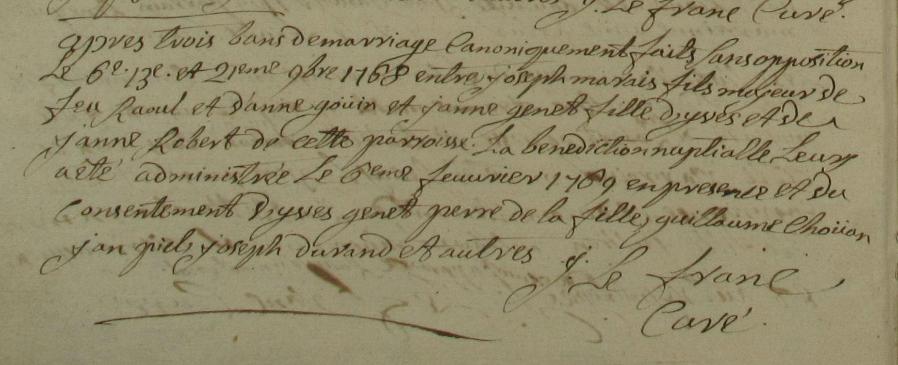 Naissance : 28 décembre 1736 à Guichen 35580 la Perraye Baptême : 29 décembre 1736 à Guichen 35580