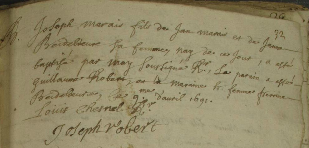 Témoins :MARAYS Joseph ( < 1678 - > 1693 )