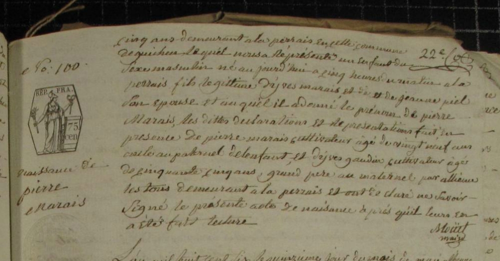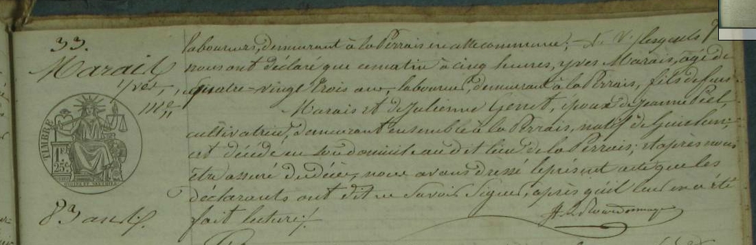 Naissance : 1er juillet 1770 à Guichen 35580 La Perrais