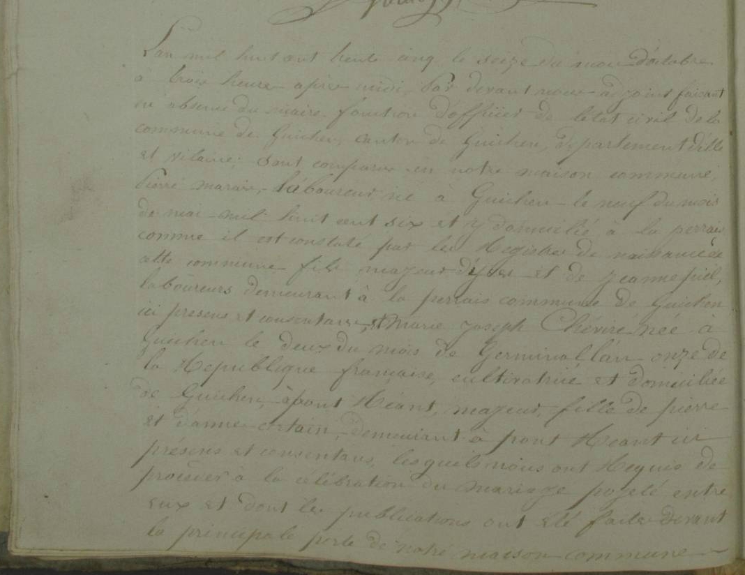 Mariage religieux : 27 septembre 1704 à Guichen 35580