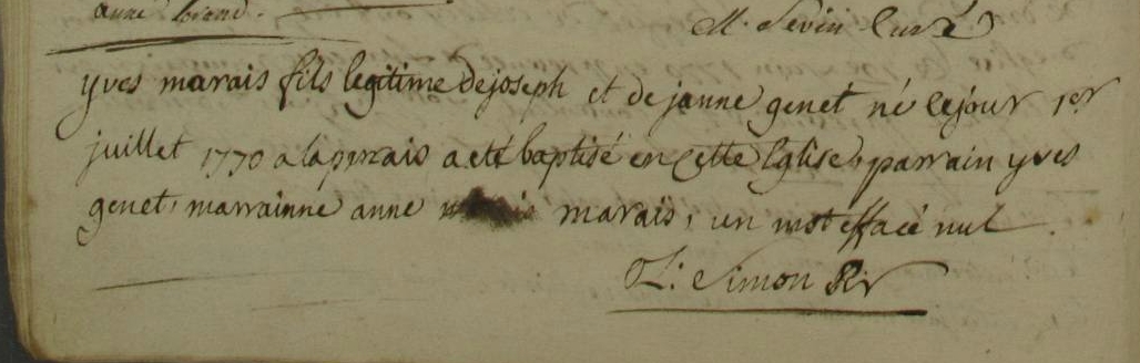Naissance : 29 mars 1680 Baptême : 30 mars 1680 à Guichen 35580