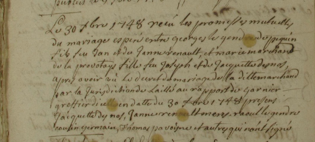 Mariage religieux : 9 février 1706 à Guichen 35580