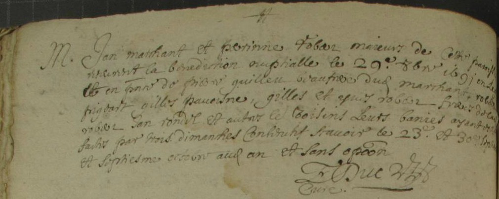 Mariage religieux : 29 octobre 1691 à Guichen 35580