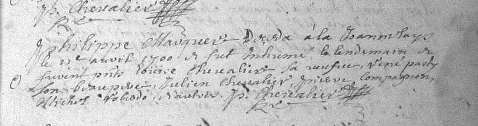 Témoins :CHEVALIER Julien ( 1663 - 1708 )