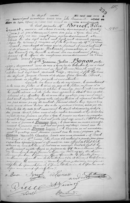Mariage : 7 mai 1901 à Lyon 69000 3eme Arrondissement