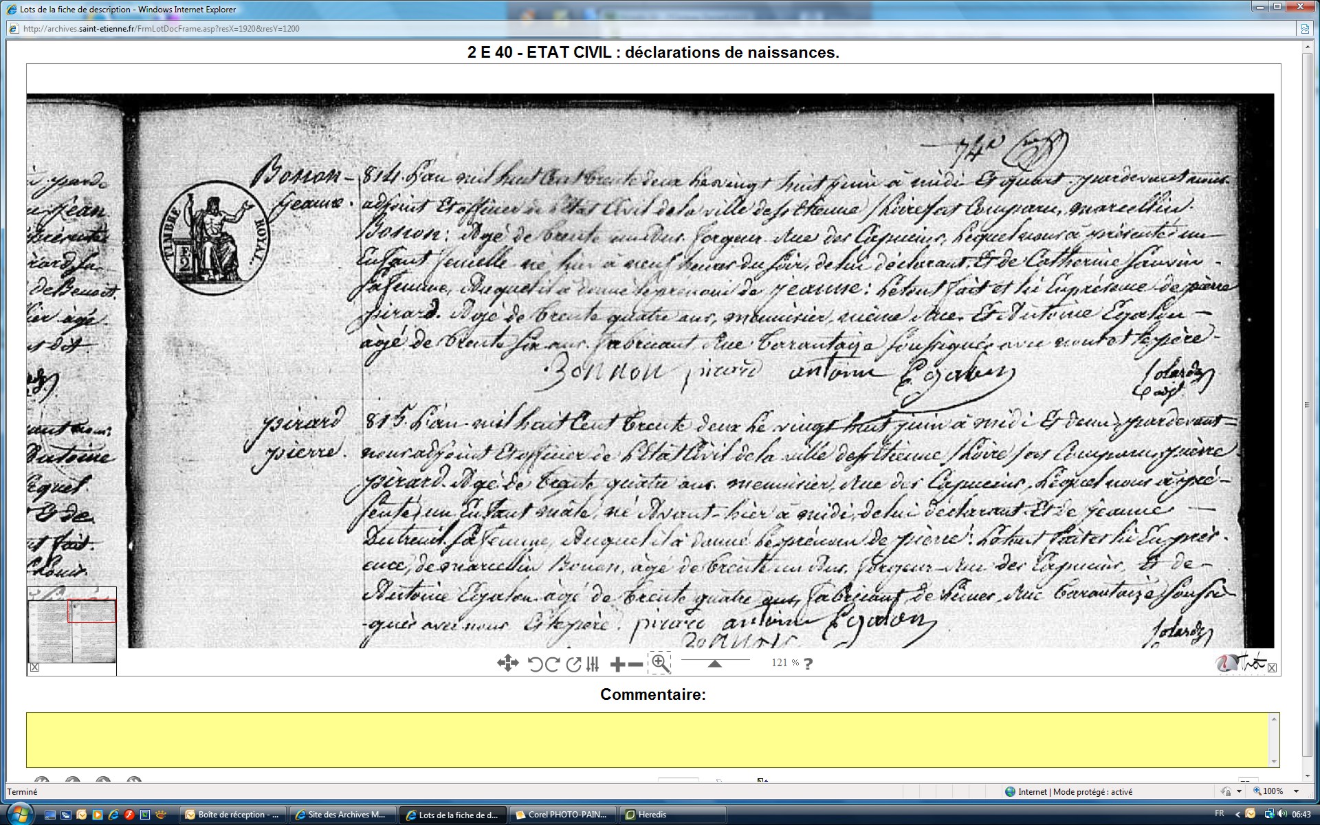 Mariage : 6 avril 1822 à Saint-Étienne 42100