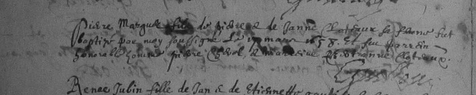 Père : MARQUER Michel ( 1625 - > 1658 )