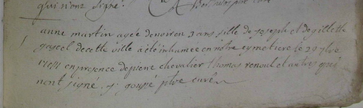 Naissance : calculée 1741 à Bazouges-La-Pérouse 35560 Décès : 29 septembre 1744 à Bazouges-La-Pérouse 35560
