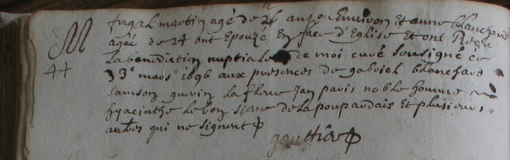 Témoin :MARTIN Guy ( ~ 1678 - > 1714 )