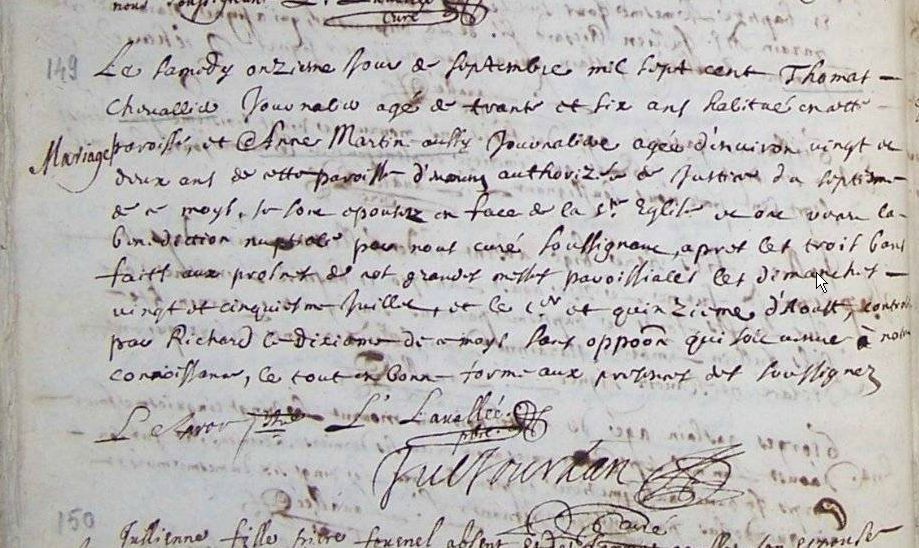 Mariage : 11 septembre 1700 à Pleine-Fougères 35610