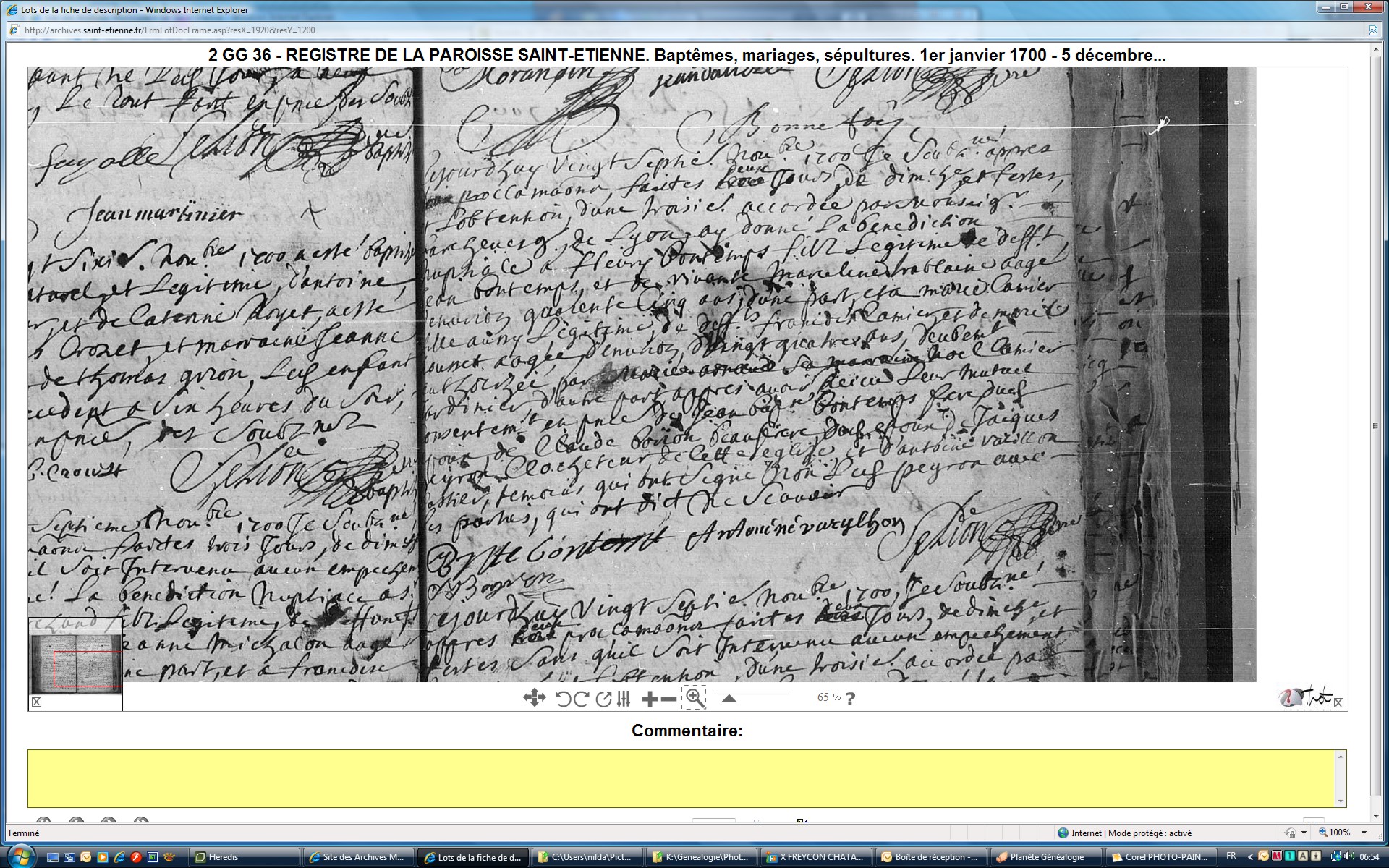 Mariage : 10 avril 1701 à Saint-Étienne 42100
