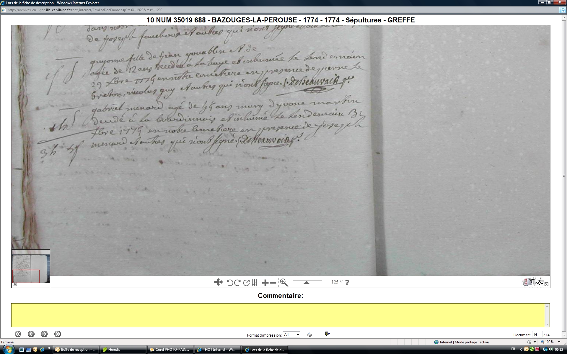 Inhumation : 4 décembre 1779 à Bazouges-La-Pérouse 35560 Village de la Bourdinais