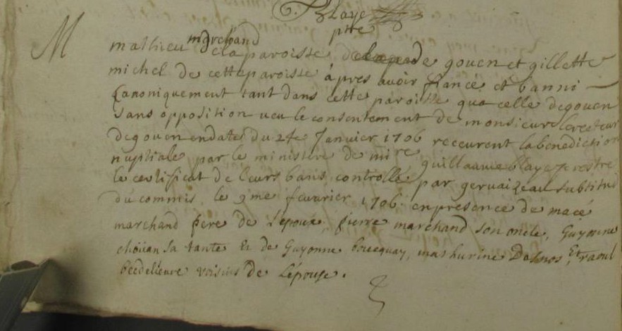 Témoins :MARCHAND Macé (Pierre) ( 1651 - > 1705 )