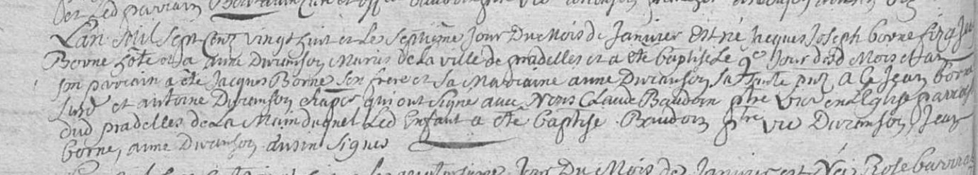 Témoins :BORNE Jacques ( < 1723 - > 1728 )