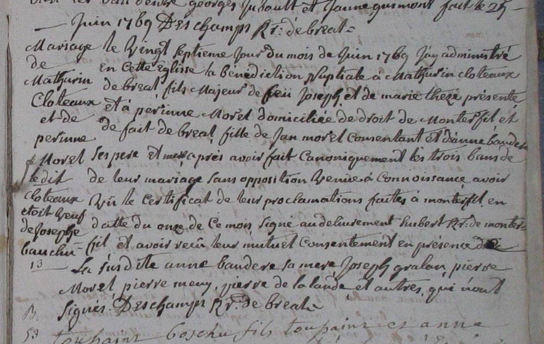 Mariage : 27 juin 1769 à Bréal-Sous-Montfort 35310