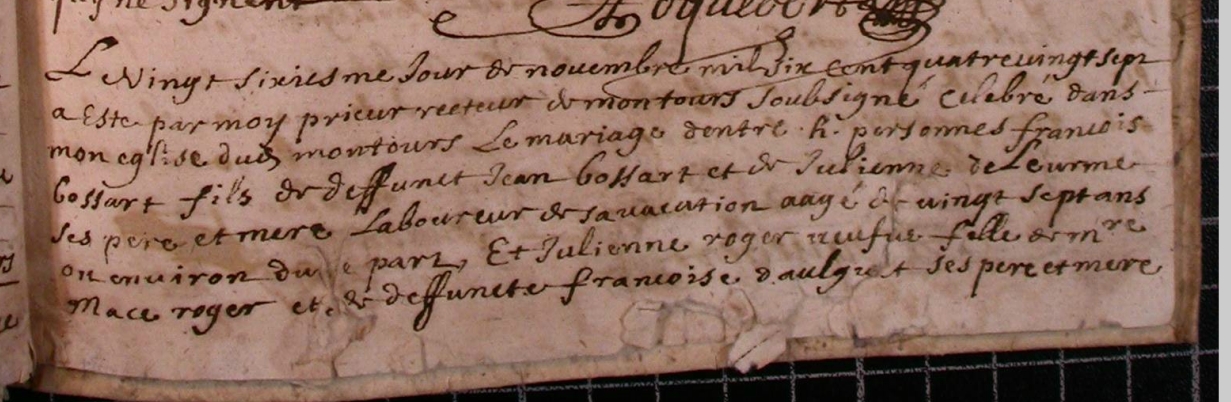 Naissance : vers 1660 à Montours 35460 Décès : après novembre 1690 à Montours 35460