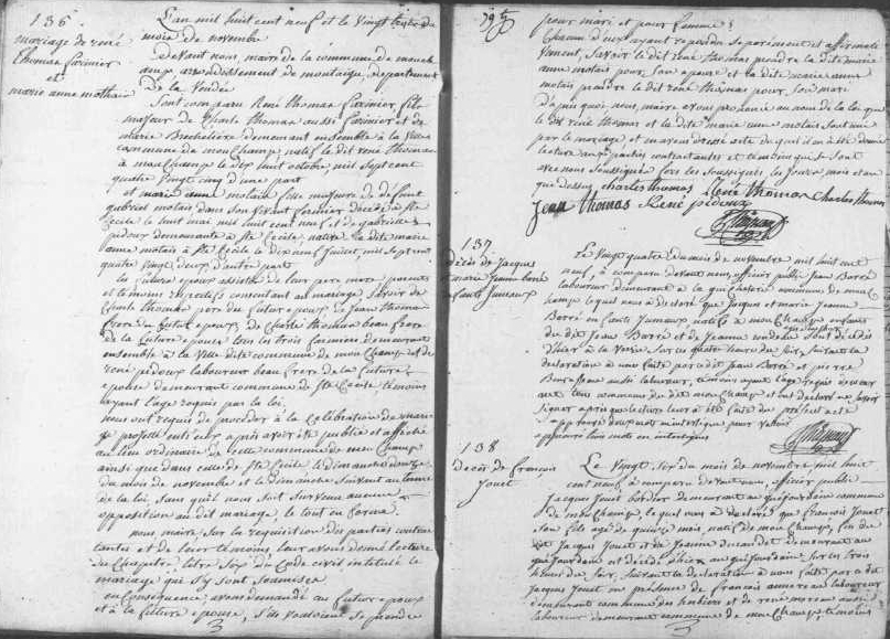 Mariage : 23 novembre 1809 à Mouchamps 85640