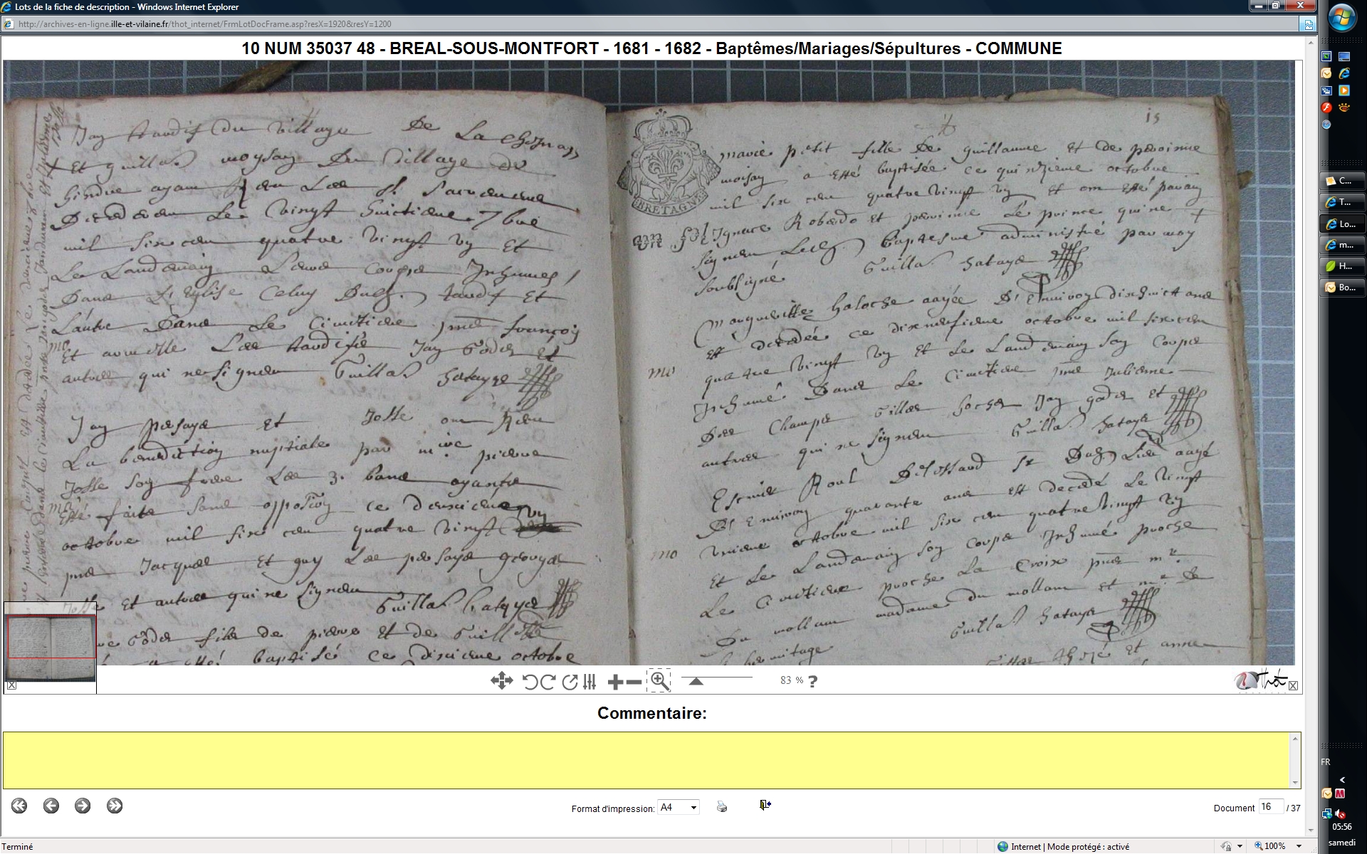 Mariage : 16 octobre 1679 à Bréal-Sous-Montfort 35310