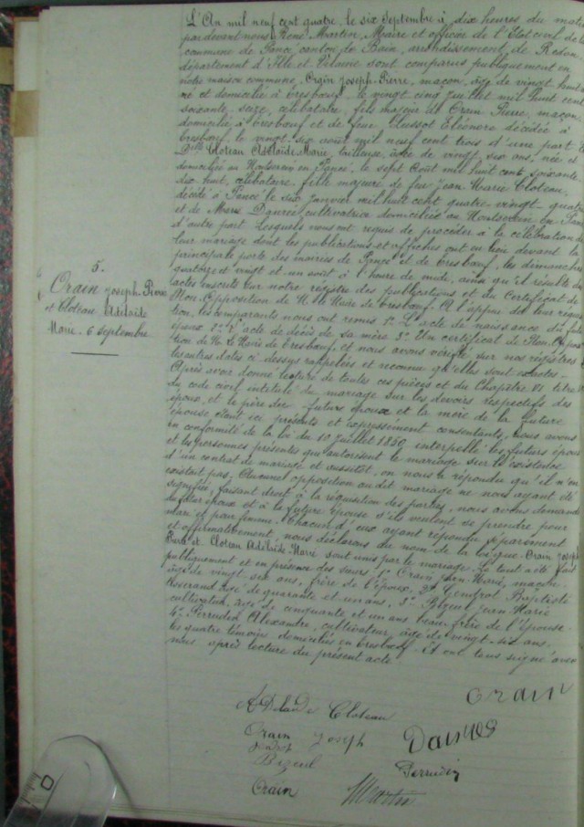 Mariage : 6 septembre 1904 à Pancé 35320