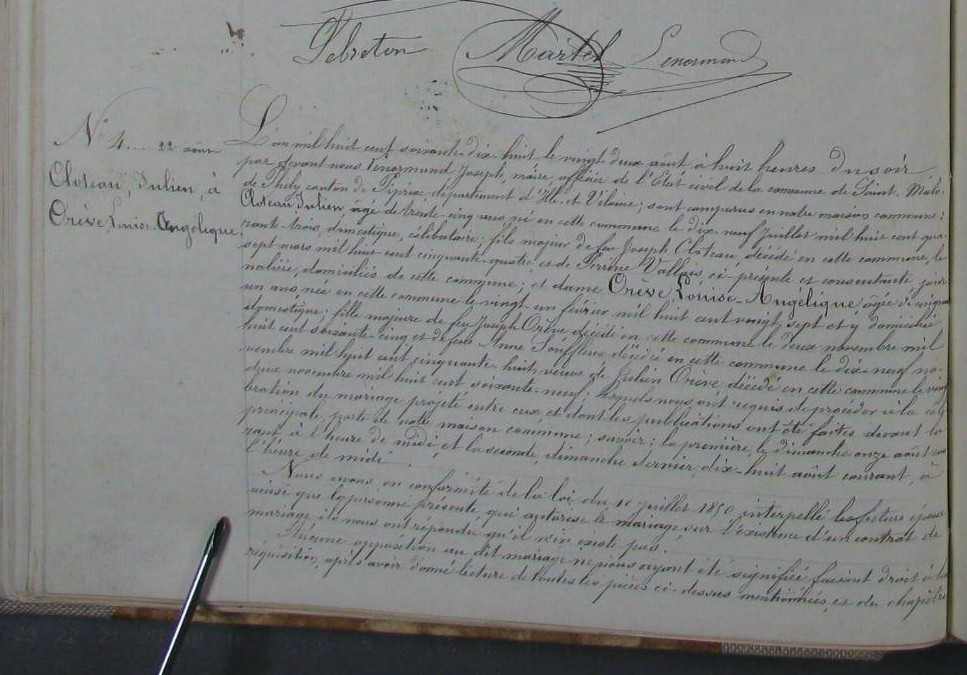 Mariage : 22 août 1878 à Saint-Malo-De-Phily 35480