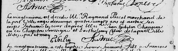 parrain de Raymond PASCAL le 31/10/1688 dans ce cas il serait marchand et Maître