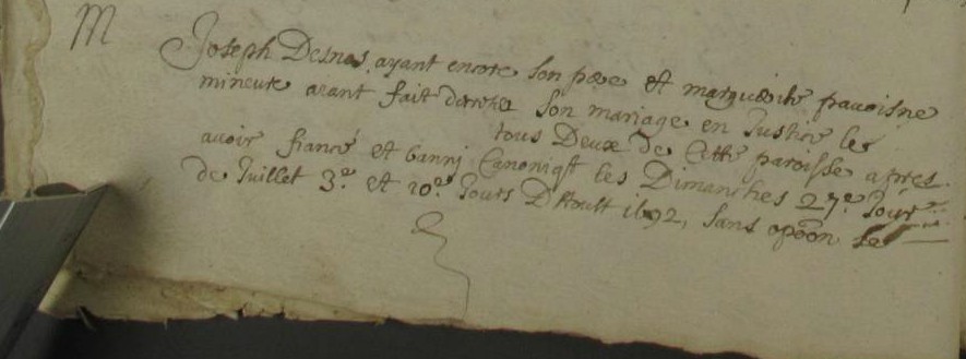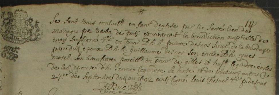 Mariage religieux : 27 septembre 1692 à Guichen 35580