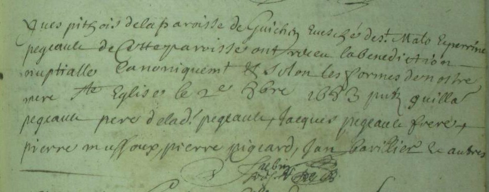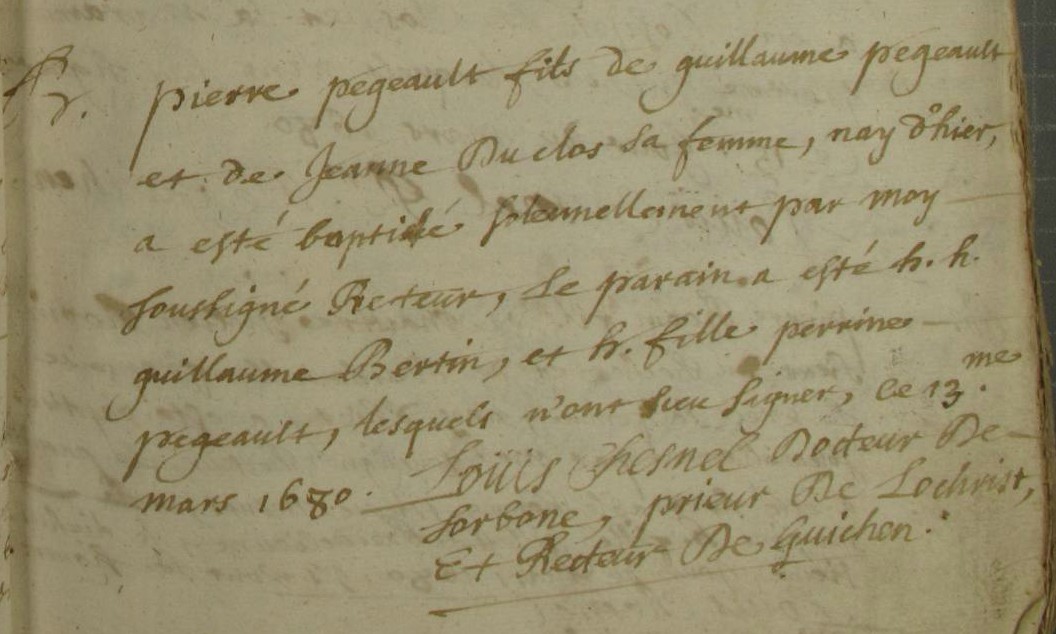 Témoins :PEJAUT PEGAULT PEGEAULT Guillaume ( < 1625 - > 1683 )