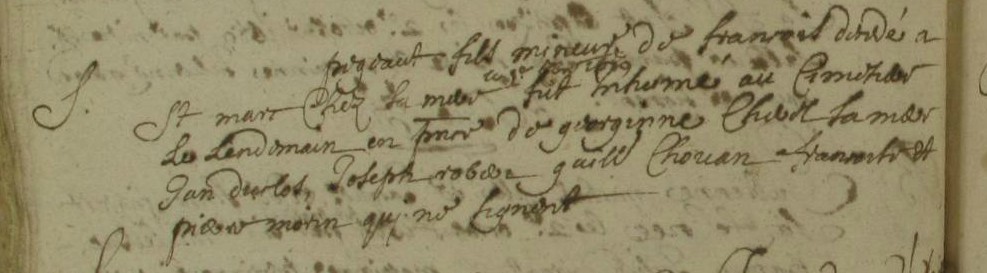 son père semble décédé puis que chez sa mère!Décès : vers 10 octobre 1689 à Guichen 35580 Saint Marc