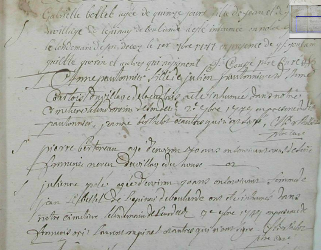 plus agé de Saint- Malo 100 ans 10 mois et 18 joursInhumation : 22 novembre 1675 à Saint-Malo 35400 Eglise cathédrale