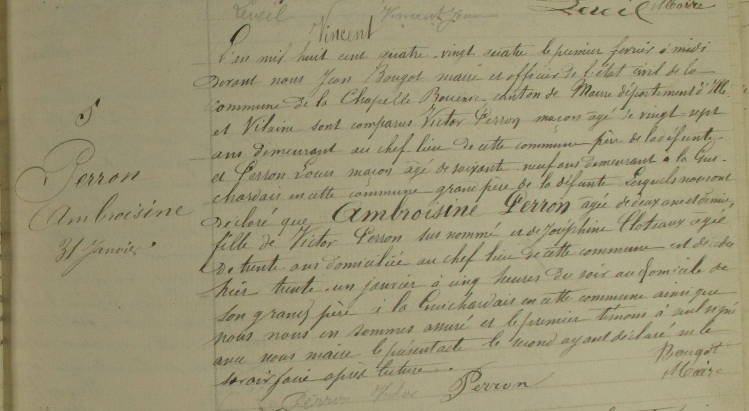 Naissance : 1881 à La Chapelle-Bouëxic 35330 Décès : 1er février 1884 à La Chapelle-Bouëxic 35330
