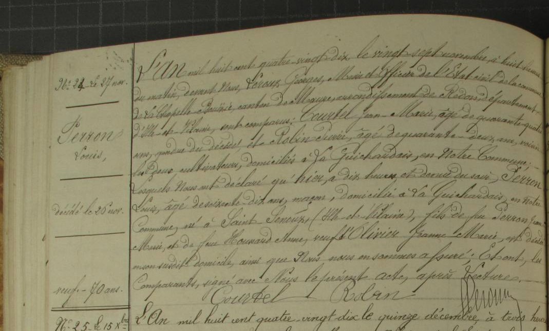 Naissance : 1817 à Saint-Senoux 35580 Décès : 27 novembre 1890 à La Chapelle-Bouëxic 35330 Guichardais