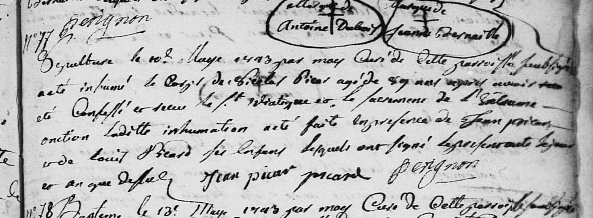 PICARD? PIGEART?Inhumation : après 22 octobre 1652