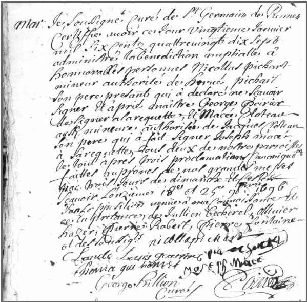Mariage : 15 novembre 1695 à Montpollin 49150